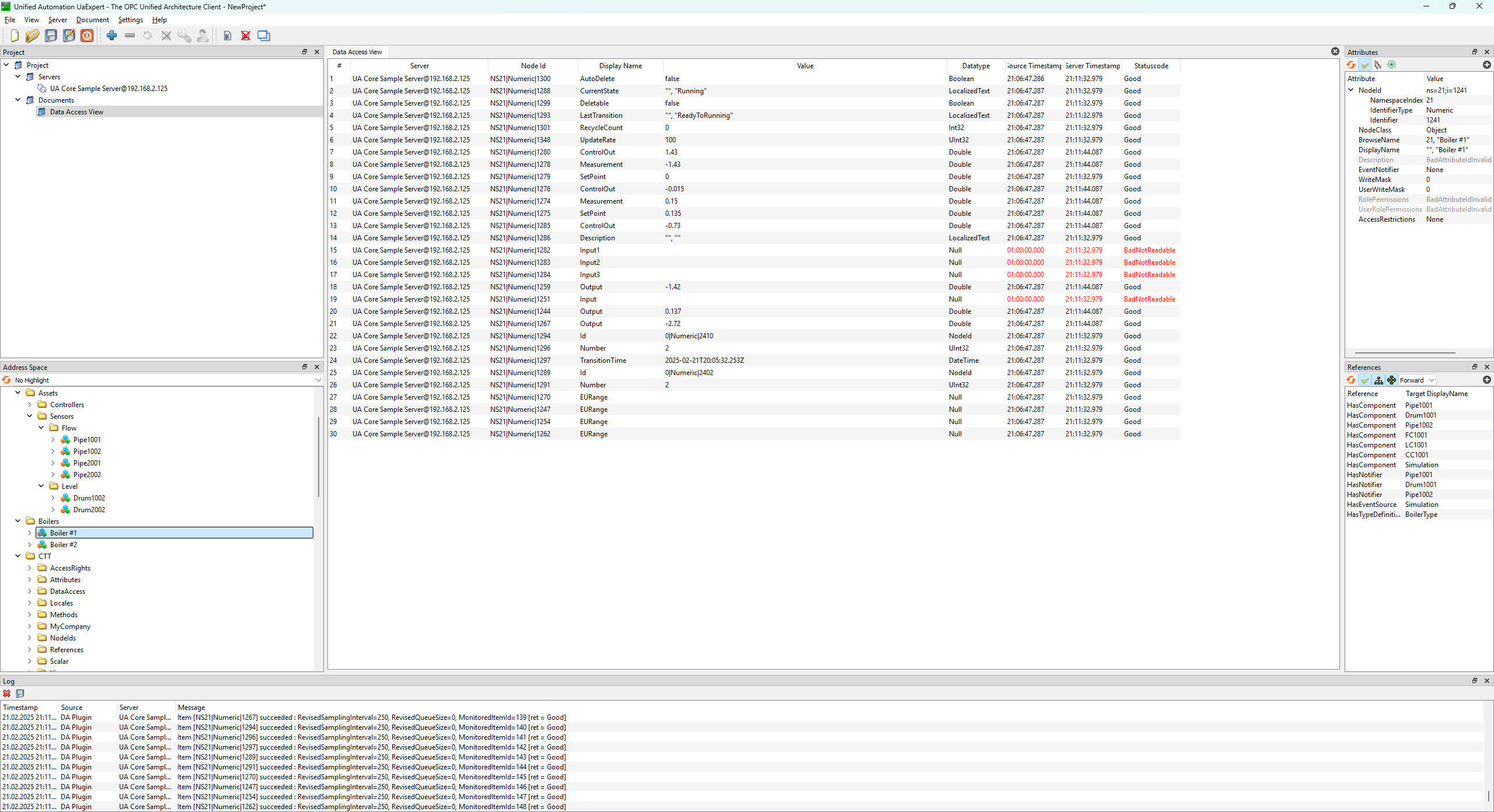 Für eine erste Exploration verwende ich den UAExpert und lese die Werte von Boiler #1 aus: