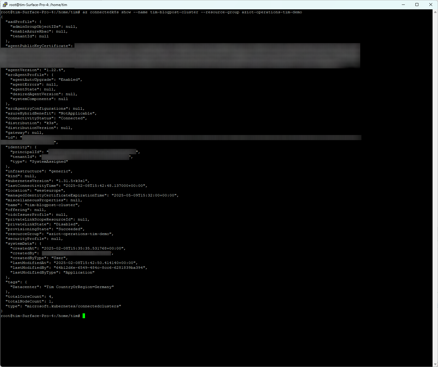 az connectedk8s show --name MeinCluster --resource-group MeinResourceGroup