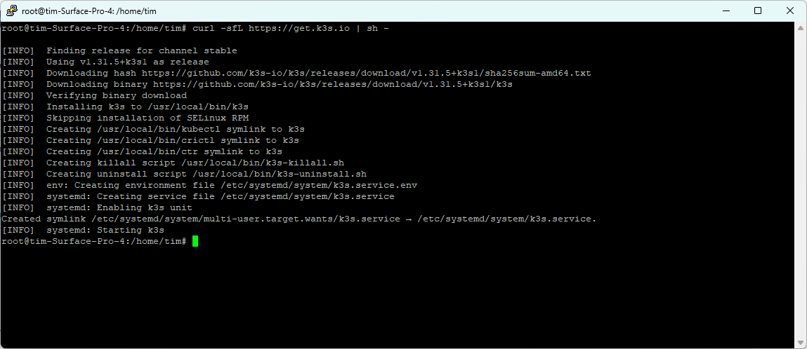 curl -sfL https://get.k3s.io | sh -Installieren von K3s auf Ubuntu