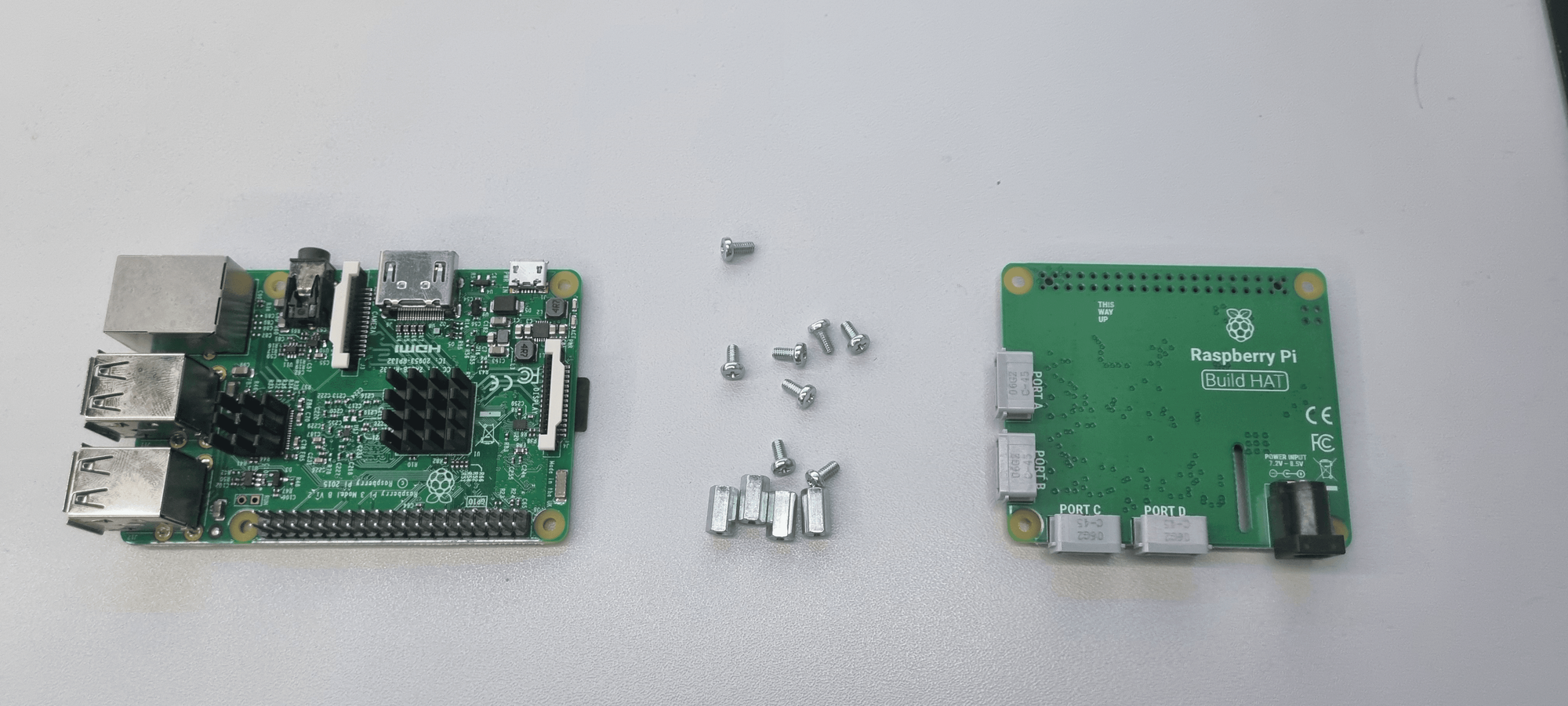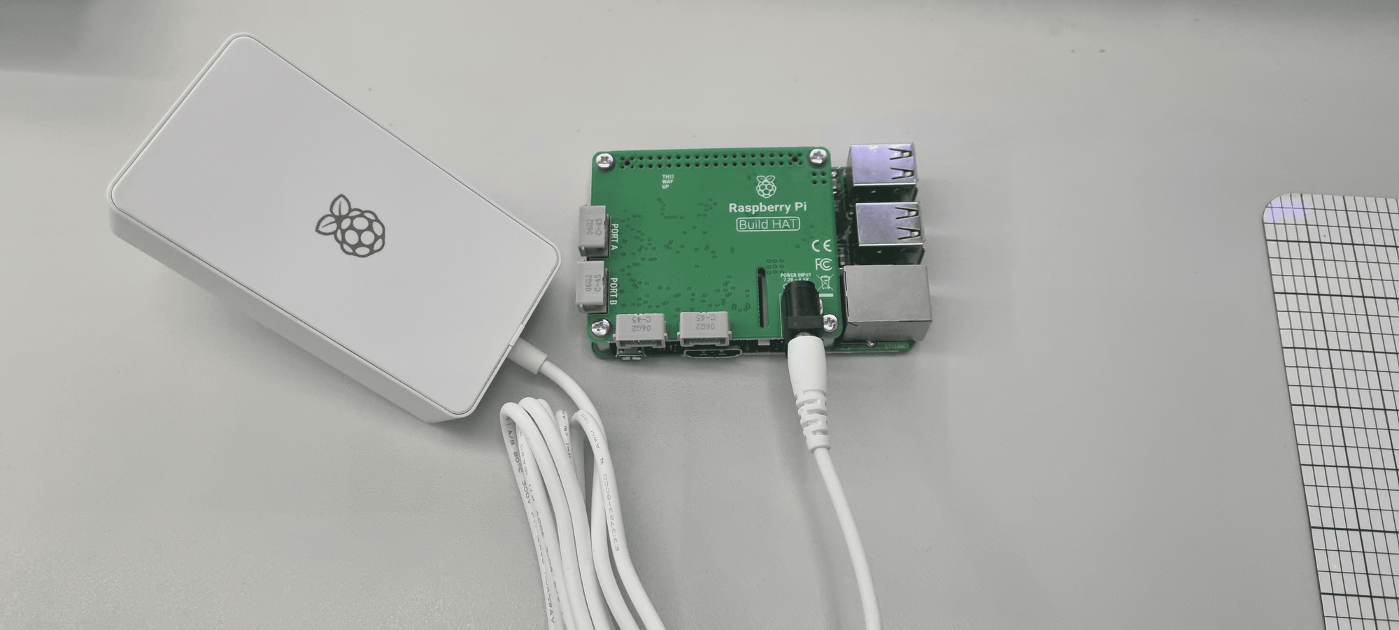 Anschließend wird der Build HAT montiert. Zunächst werden die mitgelieferten Abstandshalter am Raspberry Pi angebracht, und dann wird der Build HAT aufgesteckt. Dieser wird anschließend mit Schrauben fixiert. Danach wird das Board an die externe Spannungsversorgung angeschlossen. Diese versorgt auch den Raspberry Pi mit Strom, sofern ein geeignetes Netzteil verwendet wird. Ich habe das empfohlene Netzteil gleich mitbestellt. Es liefert eine Ausgangsleistung von 8.0V Gleichstrom, 6.0 A und 48.0 Watt.