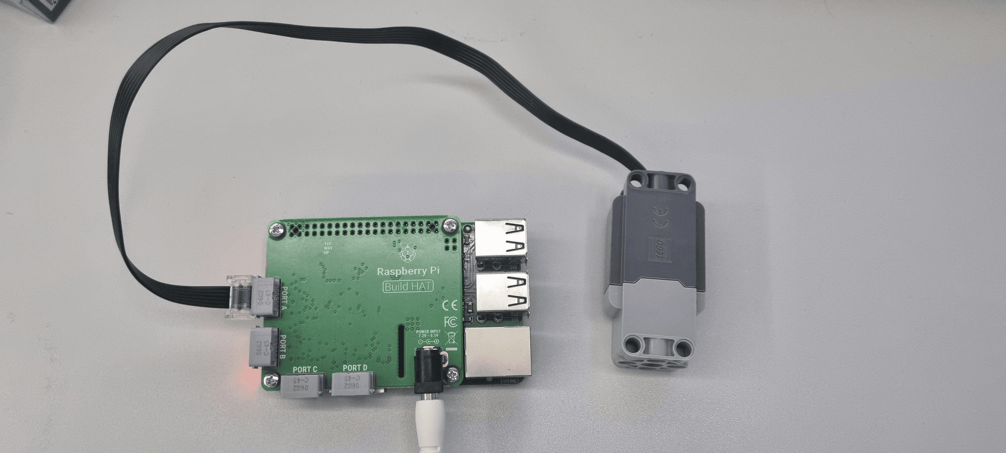 Nun kann der Motor angeschlossen werden. Dafür kann einfach ein freier Port des Build HAT verwendet werden. In meinem Beispiel habe ich den Port A genutzt.