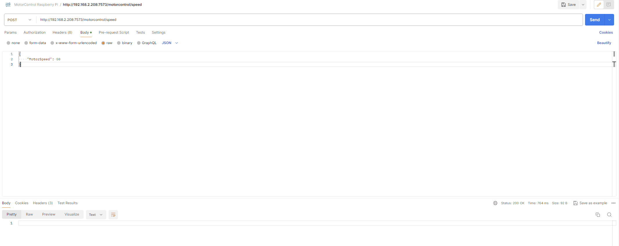 POST /motorcontrol/speed - Befehl, um den Motor mit einer bestimmten Drehzahl laufen zu lassen.