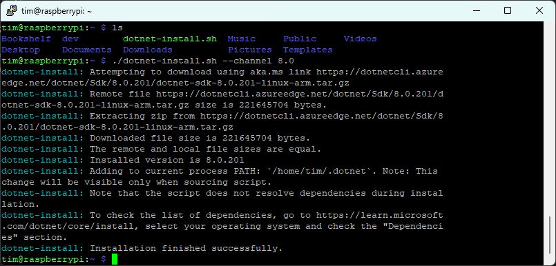 echo 'export PATH=$PATH:$HOME/.dotnet' >> ~/.bashrcZum Abschluss könnt ihr den Befehl dotnet --version ausführen, um zu überprüfen, ob die Runtime nun in der gewünschten Version verfügbar ist.